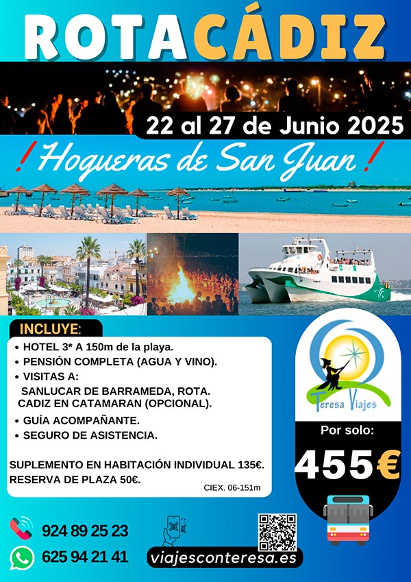Cartel Excursión Rota Cádiz Hogueras de san Juan 2025